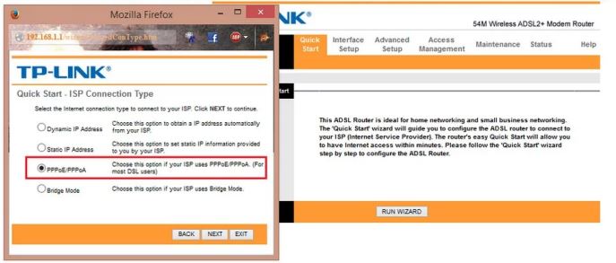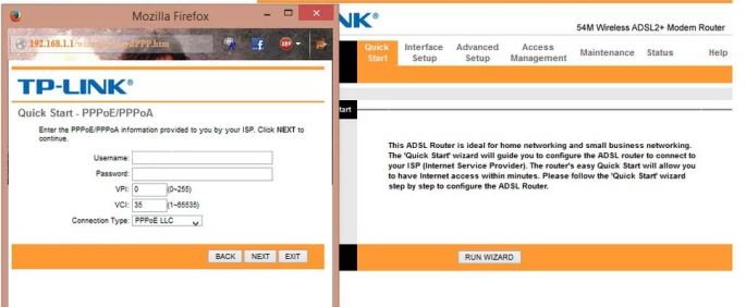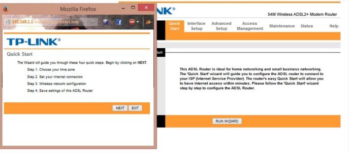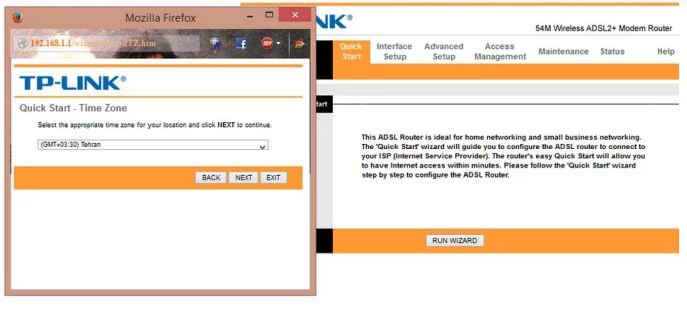 نام کاربری و کلمه عبور پیشفرض برای بسیاری از دستگاهها admin است که البته امکان تغییر آن نیز وجود دارد. اغلب مودمها و روترها دارای قابلیتی برای راهاندازی سریع و آسان دستگاه هستند که در دستگاه مورداستفاده که از طریق گزینه Quick Start در دسترس است (انجام این مراحل تنها برای زمانی لازم است که دستگاه شما به اینترنت متصل نیست و تازه میخواهید تنظیمات اتصال به اینترنت را در مودم خود وارد کنید). گزینه Run wizard را انتخاب کرده و روی Next کلیک کنید ( تصویر 3).