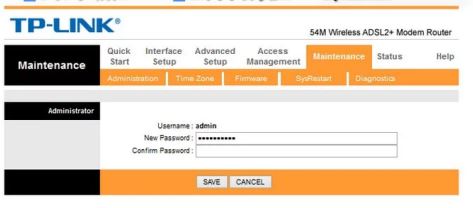 برای امنیت بیشتر حتماً پسورد ورودی مودم را تغییر دهید. بهاین منظور در تب Maintenance رفته و یک پسورد جدید برای ورود به مودم انتخاب کنید (تصویر 9).