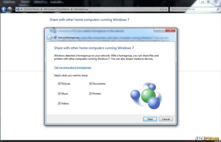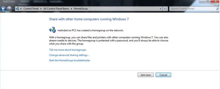 همانطور که در تصویر مشاهده میشود، در اینجا اعلام میشود که سیستم PC1 به شبکهای متصل شده است و با انتخاب دکمه Join Now امکان اتصال به Home Group که پیشتر ساختهاید فراهم خواهد شد. در مرحله بعد باید نوع اطلاعاتی که قرار است در شبکه به اشتراک گذاشته شود را مشخص کنید (تصویر 15).
