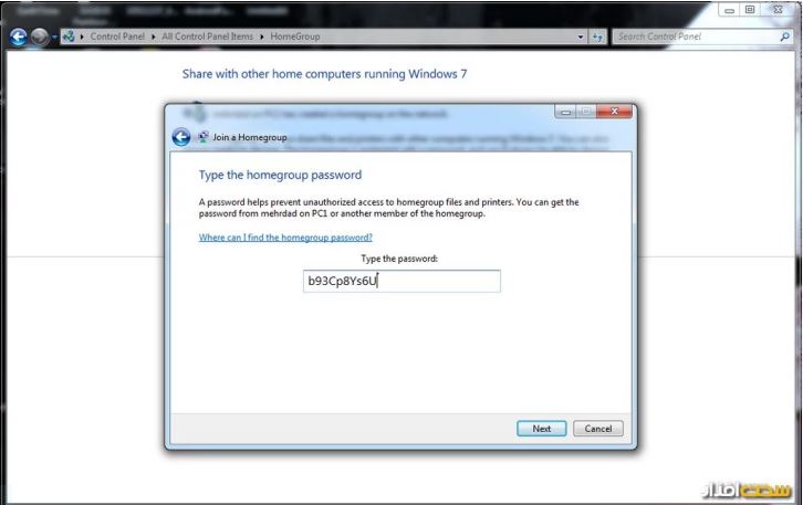 در این مرحله کلمه عبوری که در بخش قبل و در زمان راهاندازی Home Group در PC1 ارائه شد را در این قسمت کپی کرده یا بهطور دستی تایپ کنید. سپس گزینه Next را زده و سپس گزینه Finish را بزنید تا Home Group سیستم PC2 به سیستم PC1، متصل شود و بتوان اطلاعات را بین سیستمها به اشتراک گذاشت (تصویر 16و 17).