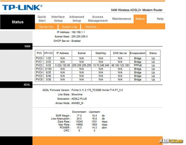 حال که توانستیم IP مودم را به دست آوریم با زدن این IP در پنل مرورگر، وارد تنظیمات مودم شوید (تصویر2).